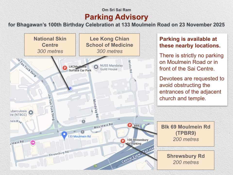 📍 Venue: Sathya Sai Baba Centre, 133 Moulmein Road, Singapore 308083