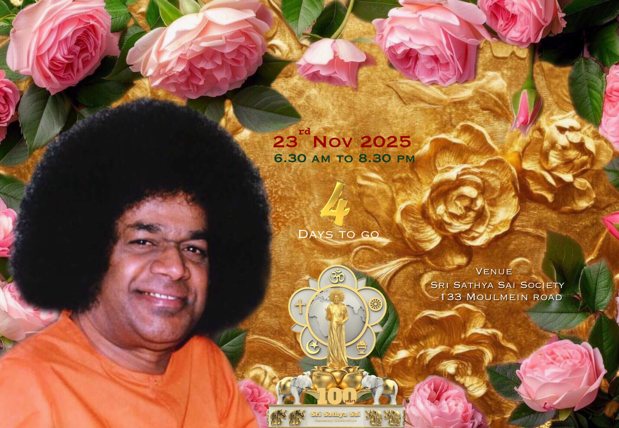 The countdown is on! Bhagavan Sri Sathya Sai Baba’s 100th Birthday Celebration is almost here, and the Sathya Sai Baba Centre in Singapore is preparing to welcome you!
